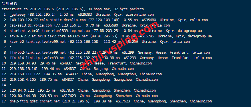 联通回程:走volia转datagroup再转retn德国法兰克福回国