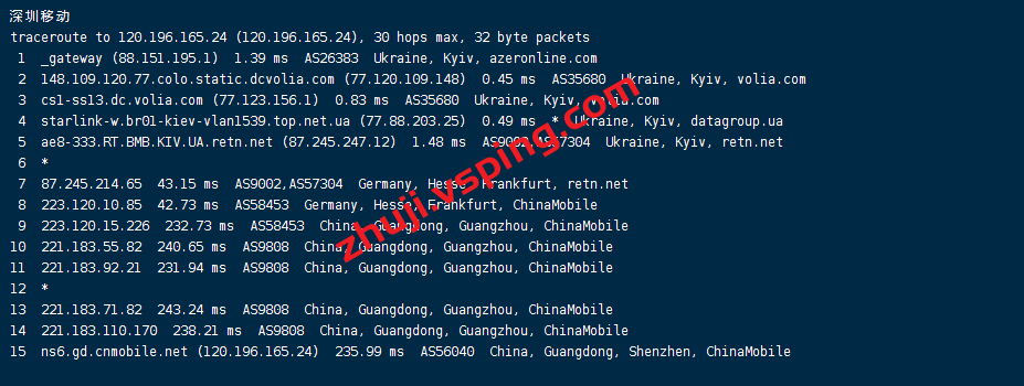 移动回程:走volia转datagroup再转retn德国法兰克福回国
