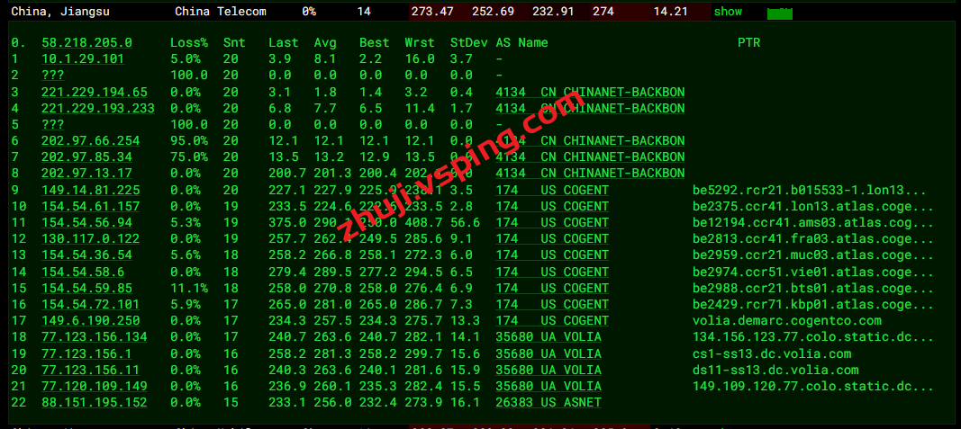 电信去程:骨干网对接COGENT转VOLIA去机房