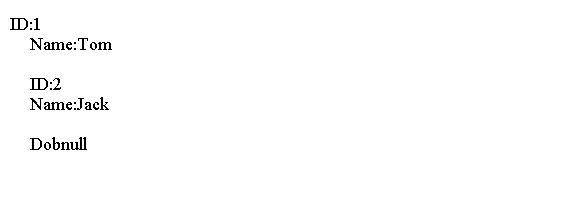 return "\n\nID:" + id + "\nName:" + name + "\n\n"+"Dob"+dob;