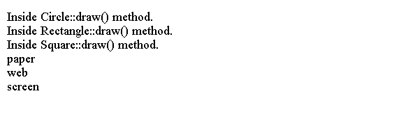 System.out.println("Inside Square::draw() method.");