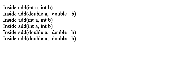 double d2 = a.add(2, (double) 3); // OK. Will use add(int, double)