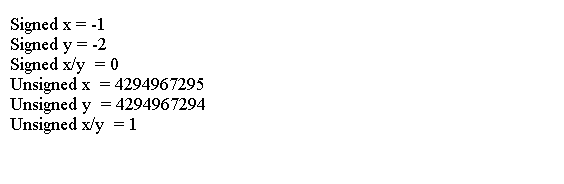 System.out.println("Signed x/y = " + (x / y));