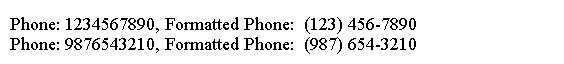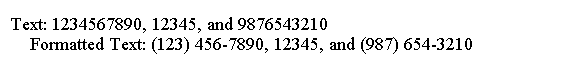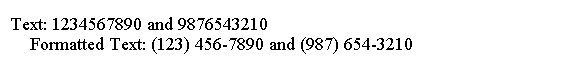 以下代码显示如何显示格式化的电话号码。在正则表达式 \b(\d{3})(\d{3})(\d{4})\b \b 表示我们感兴趣的是仅在字边界匹配十个数字。