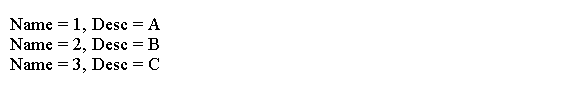 return "Name = " + getName() + ", Desc = " + getDesc();