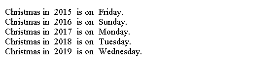 System.out.format("Christmas in %d is on %s.%n", yr, weekDay);