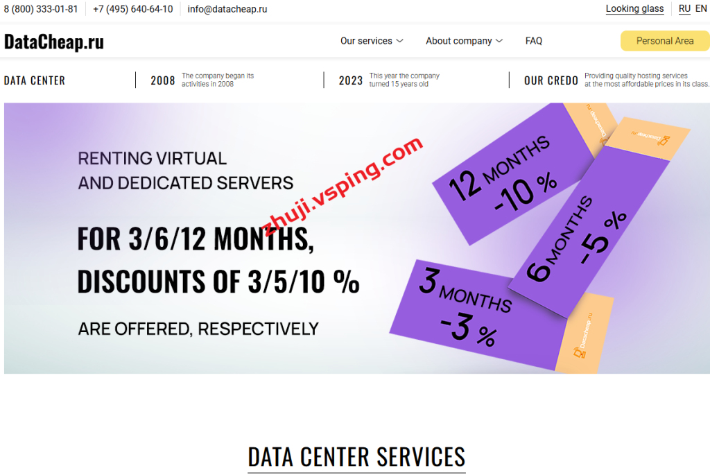 datacheap.ru是一家俄罗斯服务器商家,2008年成立,主要运作VPS、独立服务器出租、设备托管业务,数据中心分部在俄罗斯莫斯科、捷克、荷兰,支持PayPal等付款。datacheap的VPS默认1Gbps带宽,每个VM每月给5T流量,底层为KVM虚拟,NVMe SSD阵列,自带一个IPv4,支持Linux和Windows 11、Windows server 2019/2022…