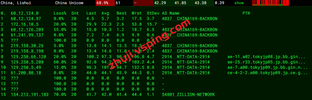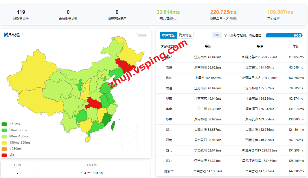 国内三网多节点的延迟数据:
