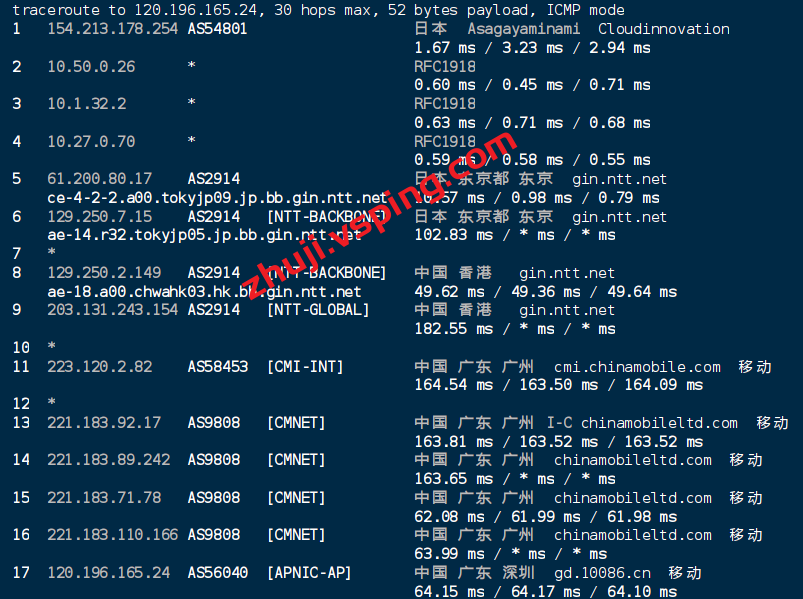 网络方面,去程三网电信联通走NTT,移动走香港绕TELSTRA;