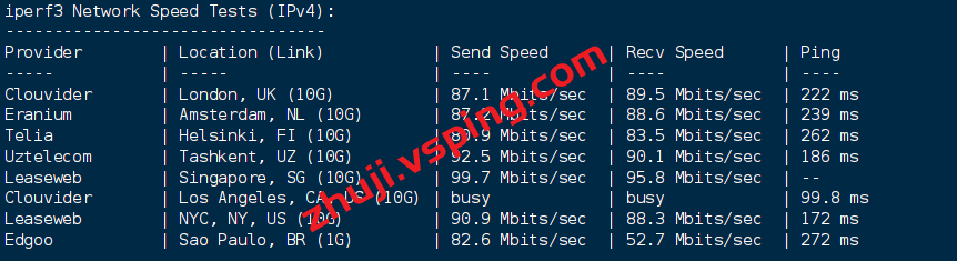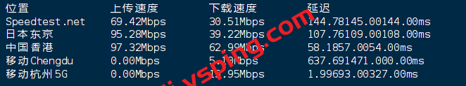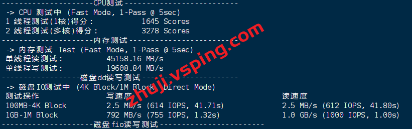 VPS部分性能测试结果: