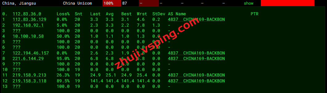 VPS性能还算可以 ,联通测试丢包,联通用户谨慎选择