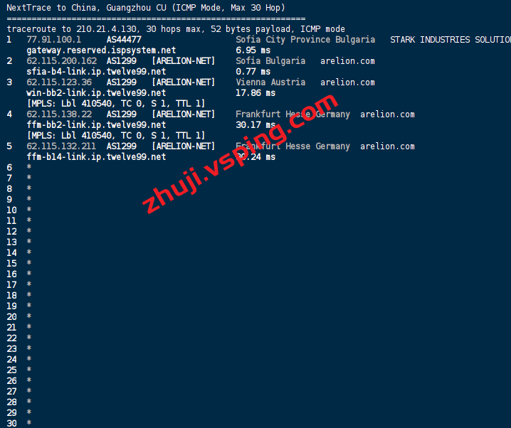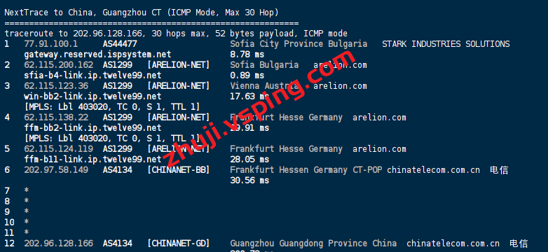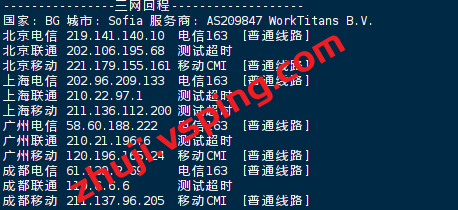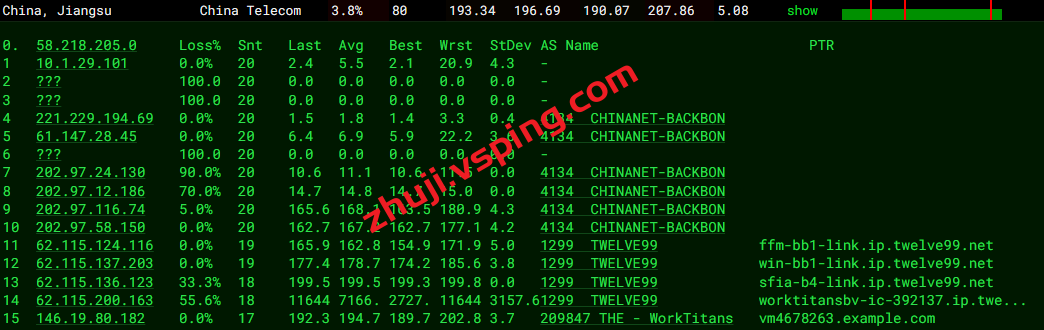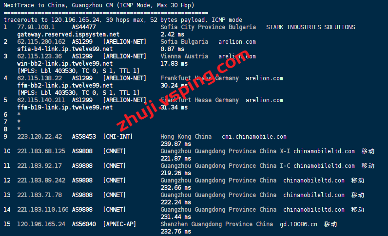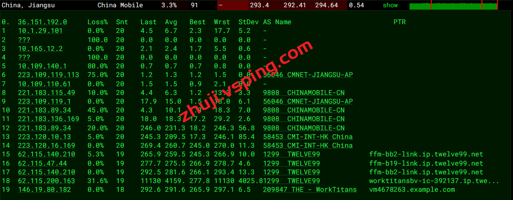 回程方面三网:联通丢包,移动电信都是走twelve99绕德国回国。