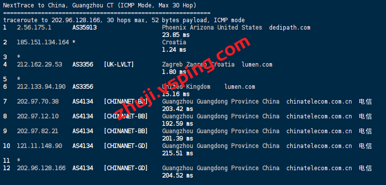 电信回程: 走LEVEL3从英国回国