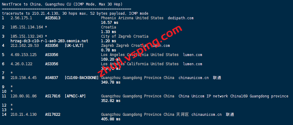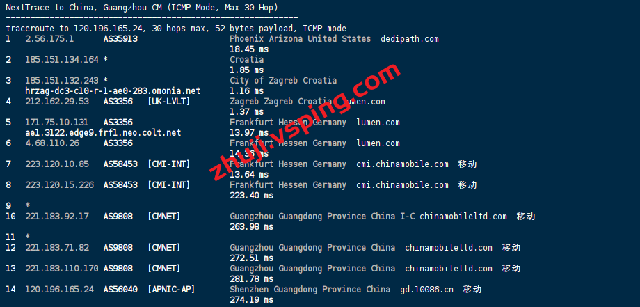 回程方面三网都是走LEVEL3电信绕美国,联通绕英国,移动绕德国回国。