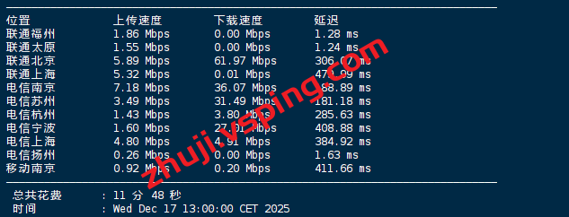 Speedtest国内多节点测试上下行速度: