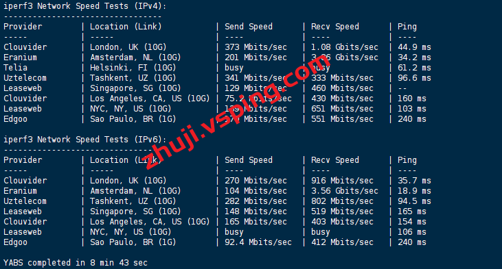 VPS部分性能测试结果: