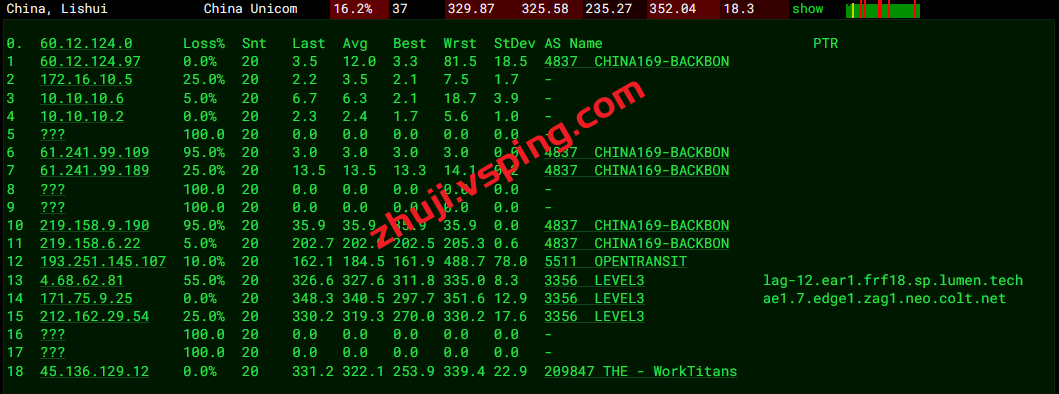 联通回程:走LEVEL3从美国回国