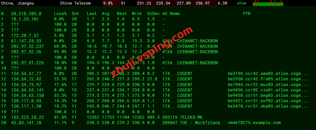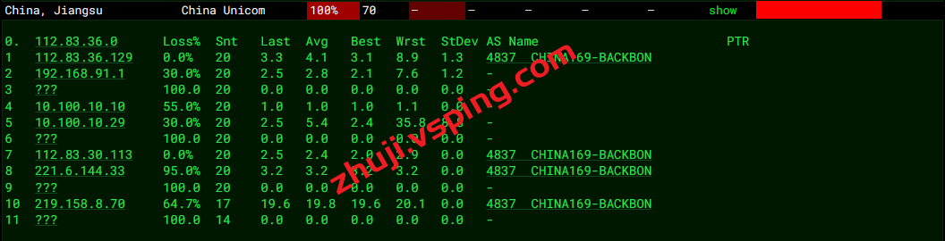 联通回程:丢包