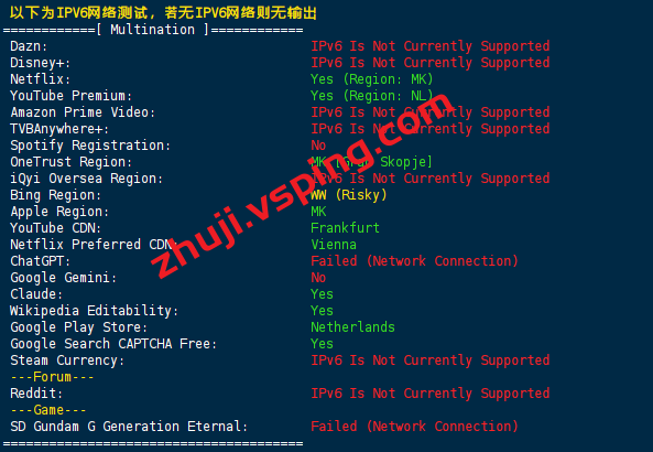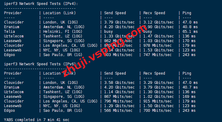 VPS部分性能测试结果: