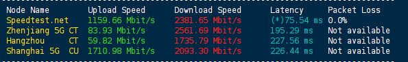 Speedtest国内多节点测试上下行速度: