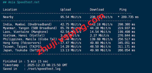 speedtest亚洲区域内的部分节点的测试数据:
