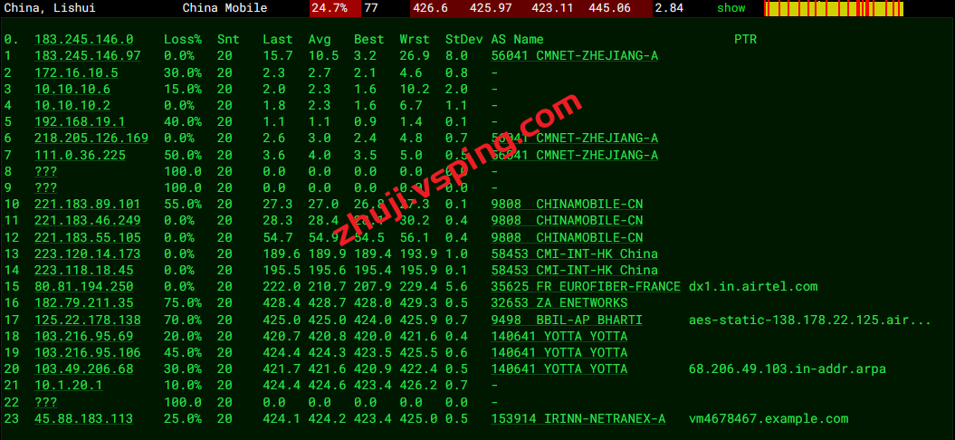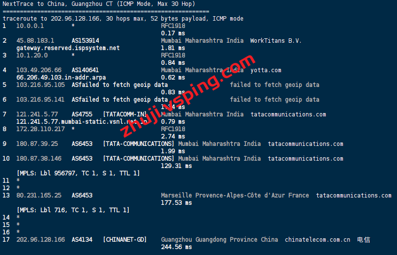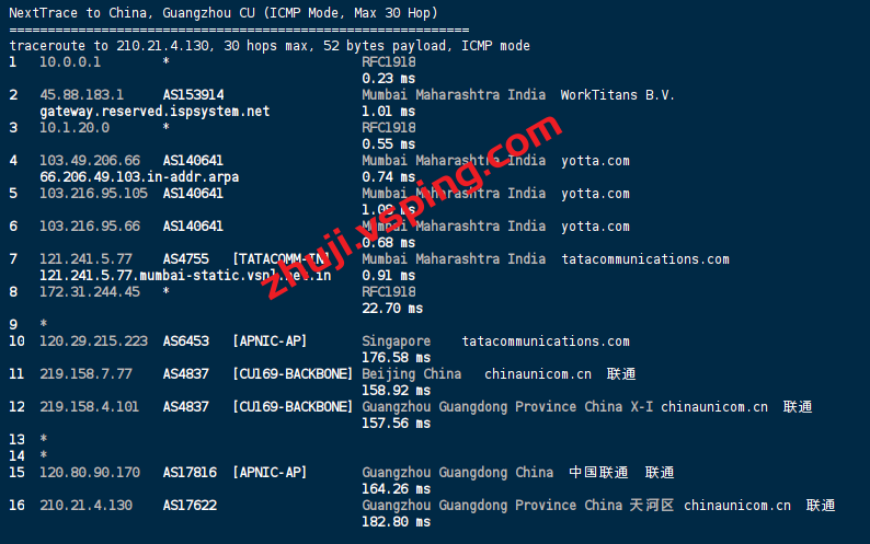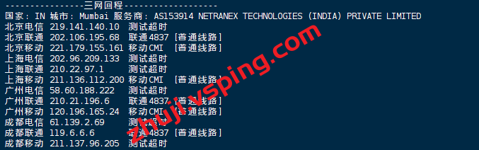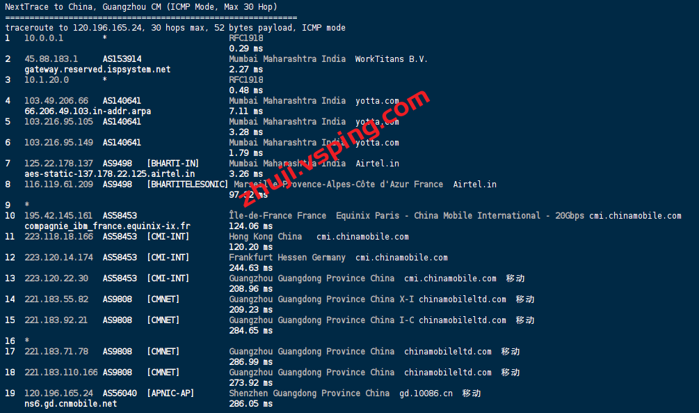 移动去程: 走香港CMI再走airtel.com 转YOTTA去机房