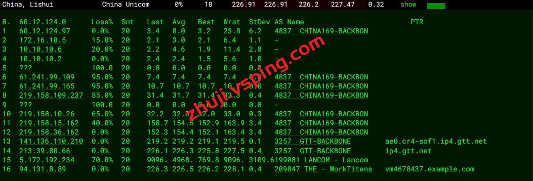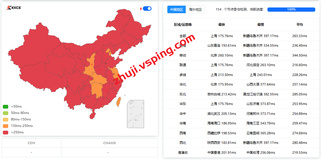 国内三网多节点的延迟测试数据: