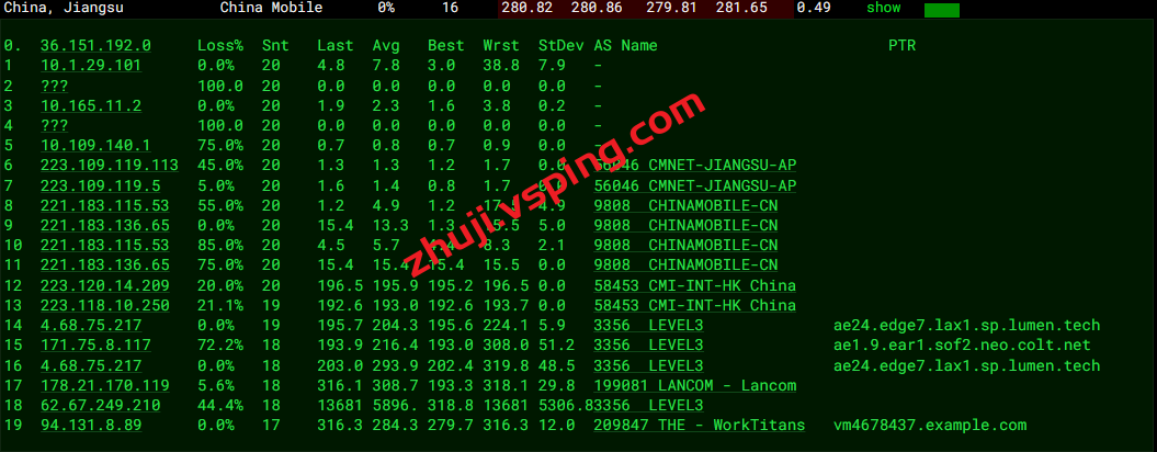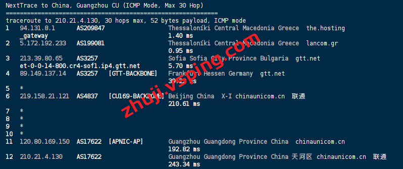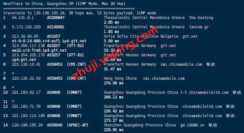 移动回程: 走LANCOM转德国GTT经过 移动cmi线路回国