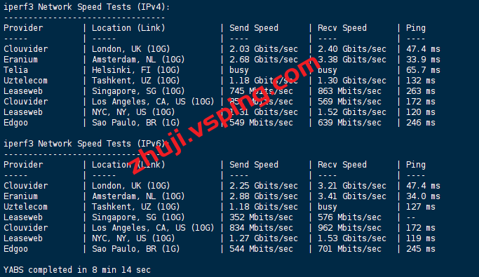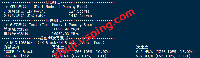 VPS部分性能测试结果: