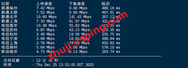 Speedtest国内多节点测试上下行速度: