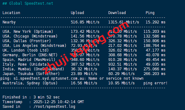 speedtest的部分国际节点的测试数据:
