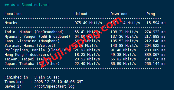speedtest亚洲区域内的部分节点的测试数据: