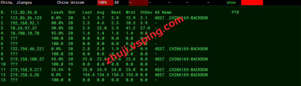 联通回程:丢包