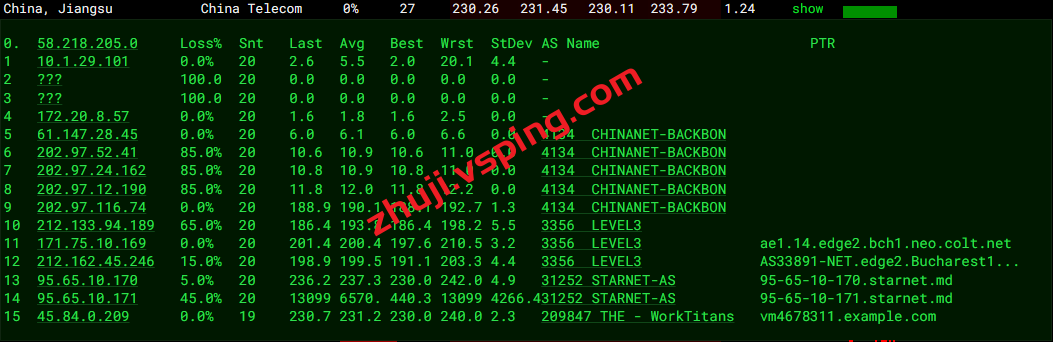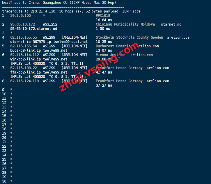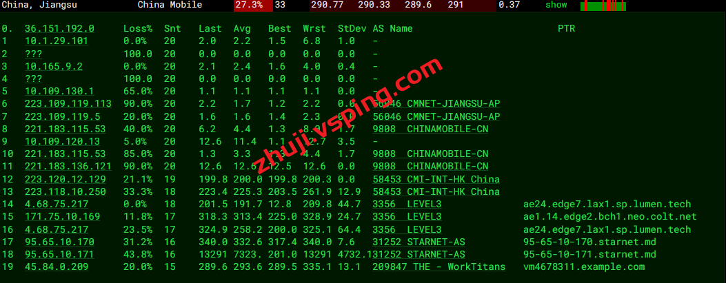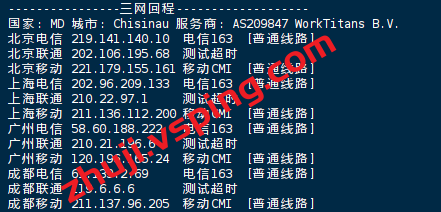 回程方面联通丢包,移动走retn.net电信走COGENT绕德国回国。