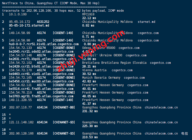 电信回程: 走COGENT从德国回国