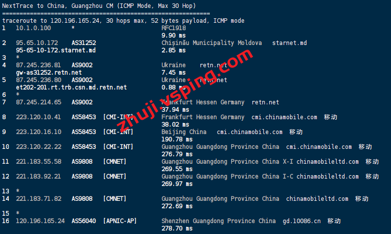 移动回程: 走retn.net转德国经过 移动cmi线路回国