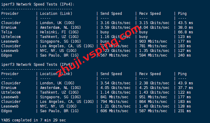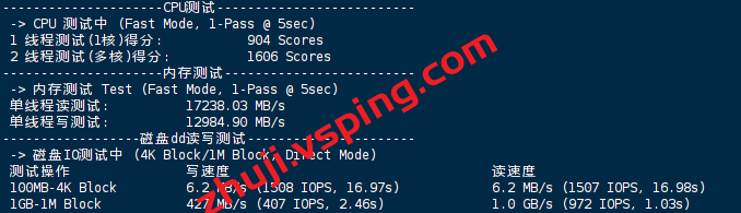 VPS部分性能测试结果: