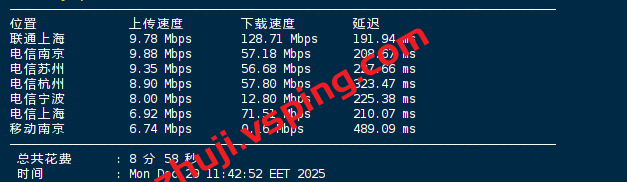 Speedtest国内多节点测试上下行速度: