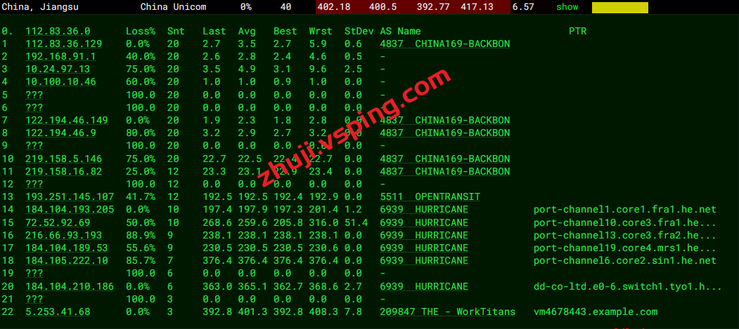 联通去程: 走OPENTRANSIT然后转HURRICANE去机房