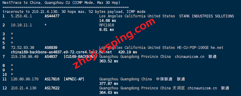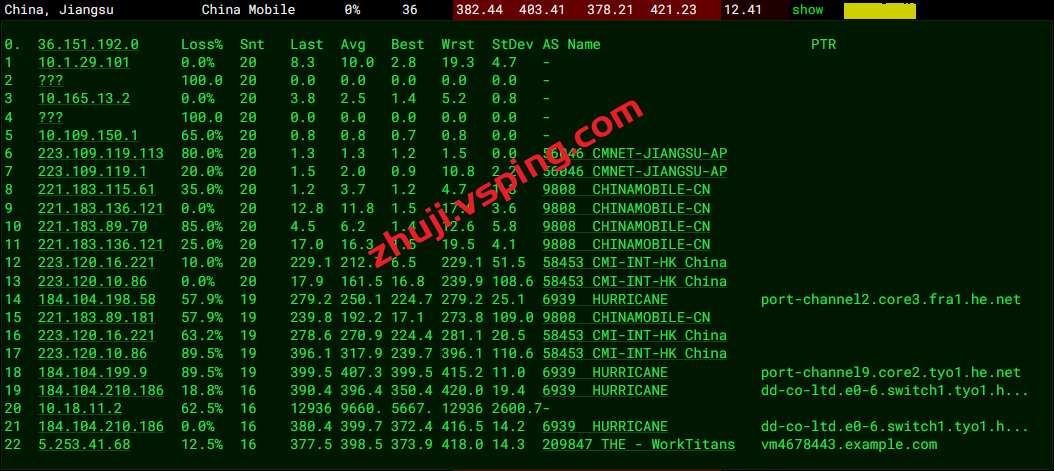 移动去程: 走香港CMI再走HURRICANE去机房