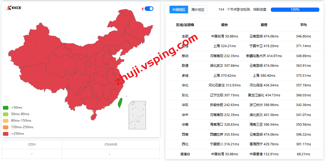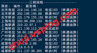 国内三网多节点的延迟测试数据: