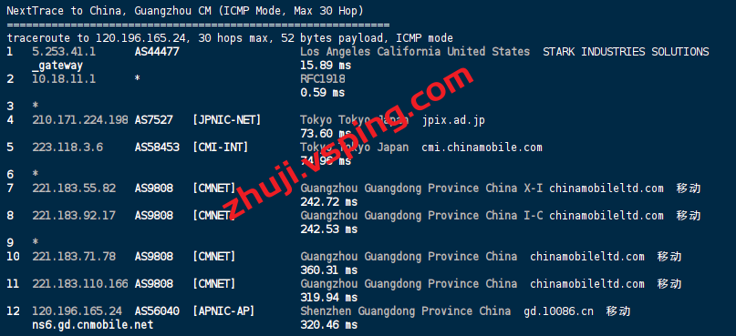 移动回程: 走JPNIC-NET经过 移动cmi线路回国