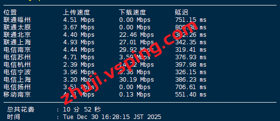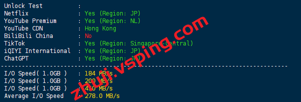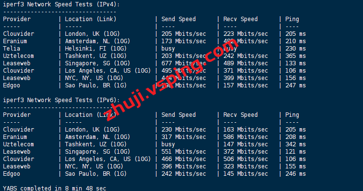 VPS部分性能测试结果: