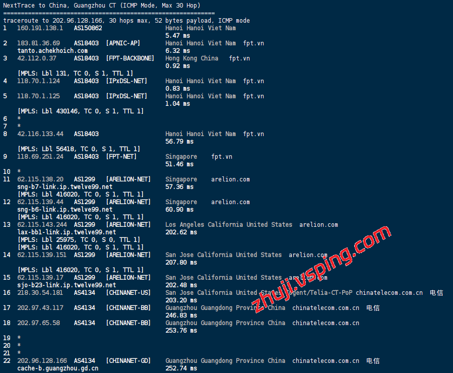 电信回程: 走fpt.vn转arelion.com从美国回国