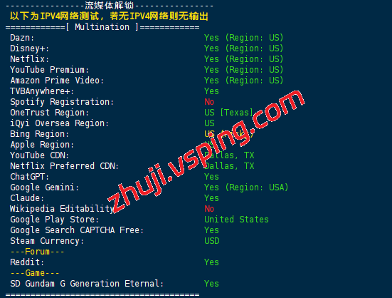 为便于用户评估该服务对特定业务的适配程度,以下提供了基于该机房的详细性能监测数据,包括流媒体解锁测试、全球延迟分布及链路追踪信息。
