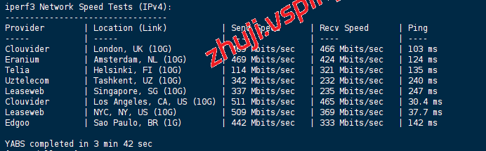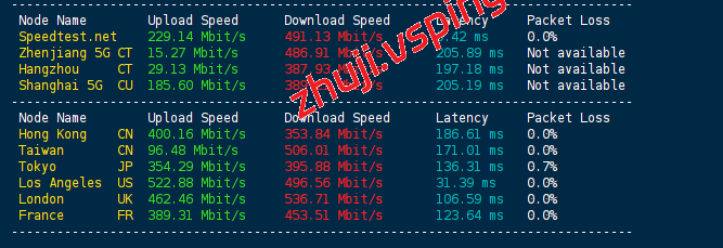 Speedtest国内多节点以及部分海外测试上下行速度: