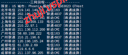 中国电信: 电信骨干网直出,经 GTT (AS3257) 链路直达菲尼克斯机房。