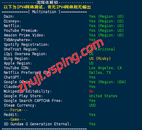 为便于用户评估该服务对特定业务的适配程度,以下提供了基于该机房的详细性能监测数据,包括流媒体解锁测试、全球延迟分布及链路追踪信息。