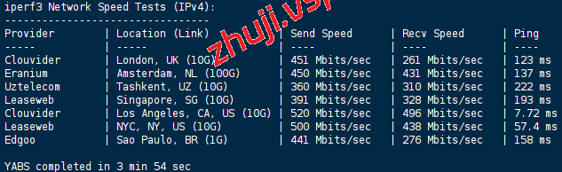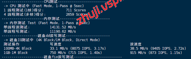 VPS部分性能测试结果: