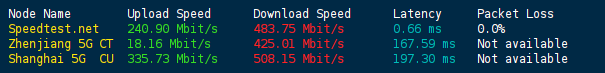 Speedtest国内多节点测试上下行速度: